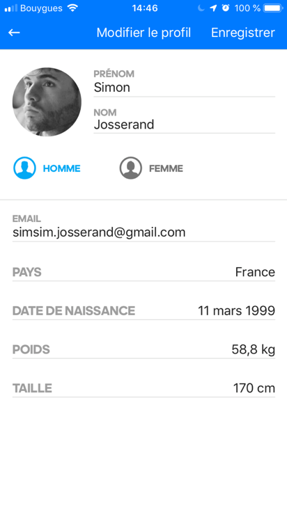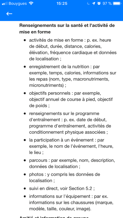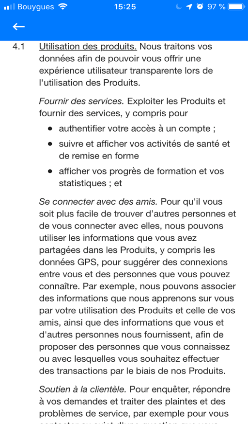 En effet, la collecte de données sur le corps (taille / poids / âge / condition physique) préalable à l’utilisation de l’application constitue un apport essentiel d’information pour celle-ci.