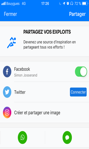 - Finalement la communauté virtuelle ainsi créée permet de recréer des rapports entre individus au sein même de l’application. Ainsi l’idée de réseau est ici déterminante d’autant que cette communauté est aussi reliée à d’autres réseaux comme Facebook / Twitter / Instagram où la performance peut être partagée et mise en valeur.