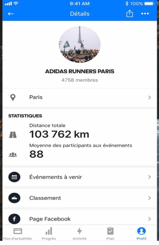 - Aussi la communauté crée par l’application se déploie à l’échelle d’une ville de taille suffisante (Ex : Paris) pour regrouper des individus partageant un même objectif sportif. L’application sert donc également de plateforme d’échange entre individus et modifie substantiellement les rapports sociaux par la pratique du sport dont les performances servent d’outils d’auto-évaluation, de comparaisons et même communication. En effet, ceux-ci se voient potentiellement étendus si l’on compare avec des rapports sociaux classiques (club de sport, cercles amicaux ou familiaux) dans ce domaine.