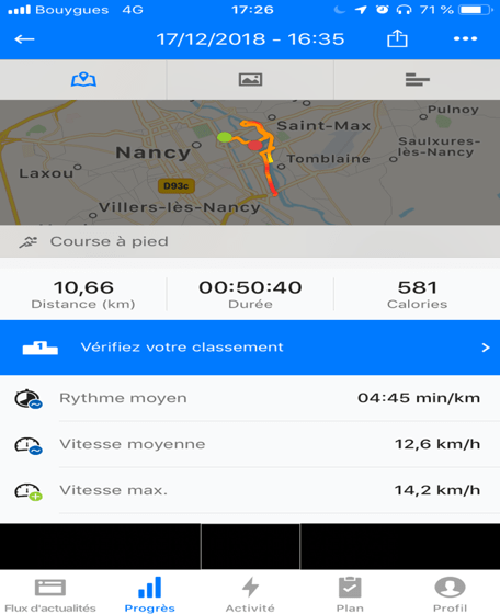 Par ailleurs, la pratique sportive du running permet par le biais de l’application que le corps de l’individu se voit intégrer numériquement. Sa performance, son potentiel de progression et sa possible amélioration sont systématiquement évalués.