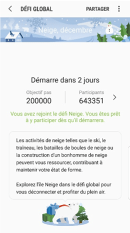 L’application tente pourtant de créer des communautés et de réaffirmer une cohésion entre les utilisateurs. On peut le constater avec les « défis globaux » qui donne à tous des objectifs communs.